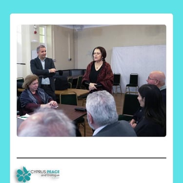The second event, "Diaspora Perspectives on Property Issues", took place on January 23 at the Cyprus Community Centre (Cyprus House). This workshop utilized a mini citizen’s assembly methodology under CPDC’s C-Up project and was co-facilitated by Dr. Onurkan Samani and Professor Neophytos Loizides, with expert input from Achilleas Demetriades. In addition to these events, Dr. Onurkan- Samani and Demetriades met with the Cyprus High Commissioner to the UK and Sheba Rosier, Head of the Cyprus Desk at the UK Foreign and Commonwealth Office, to discuss ongoing peace efforts. They also participated in a closed meeting on arbitration, evaluating Professor Partasides’ proposal as a mechanism to overcome political deadlocks.